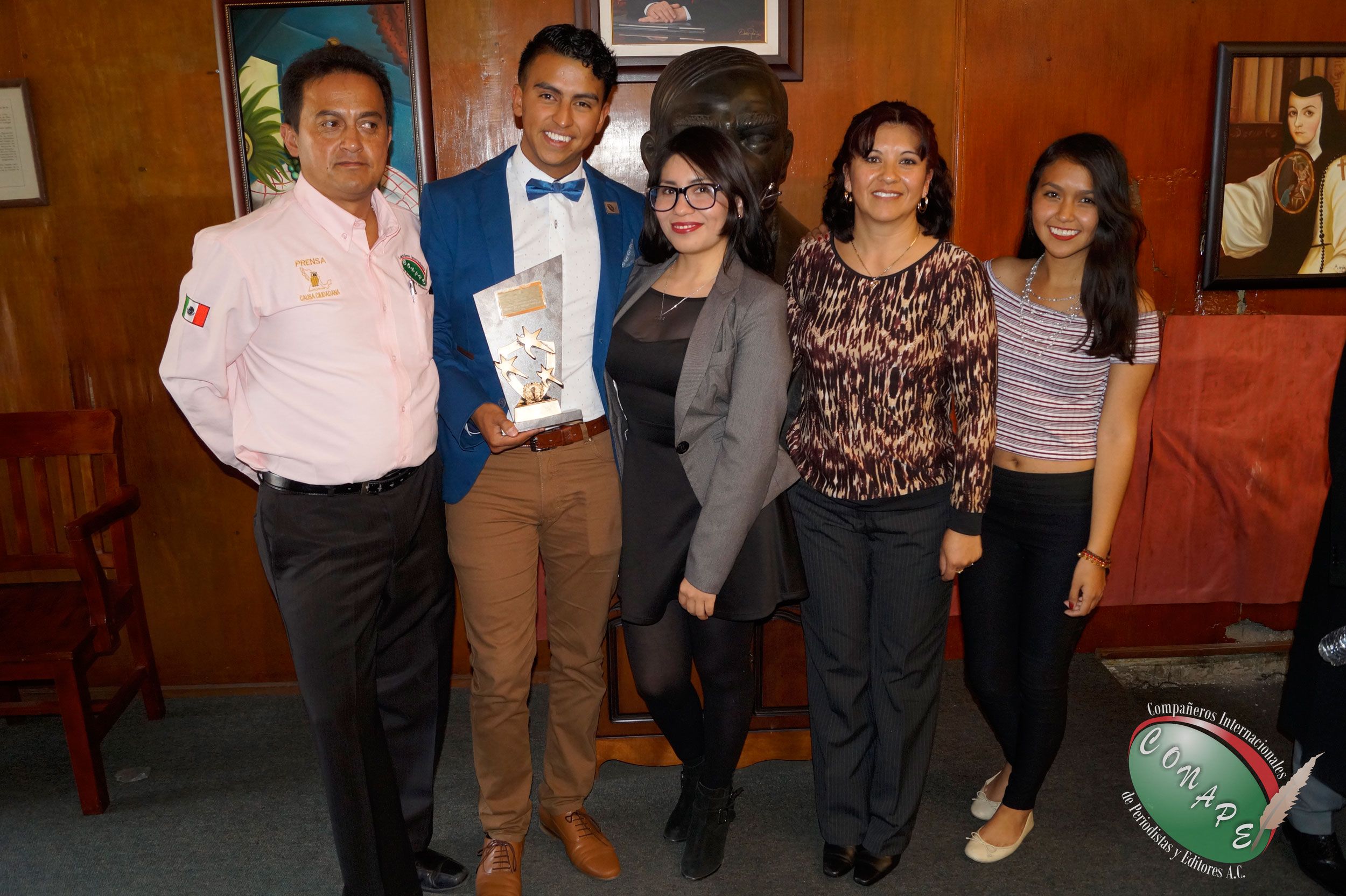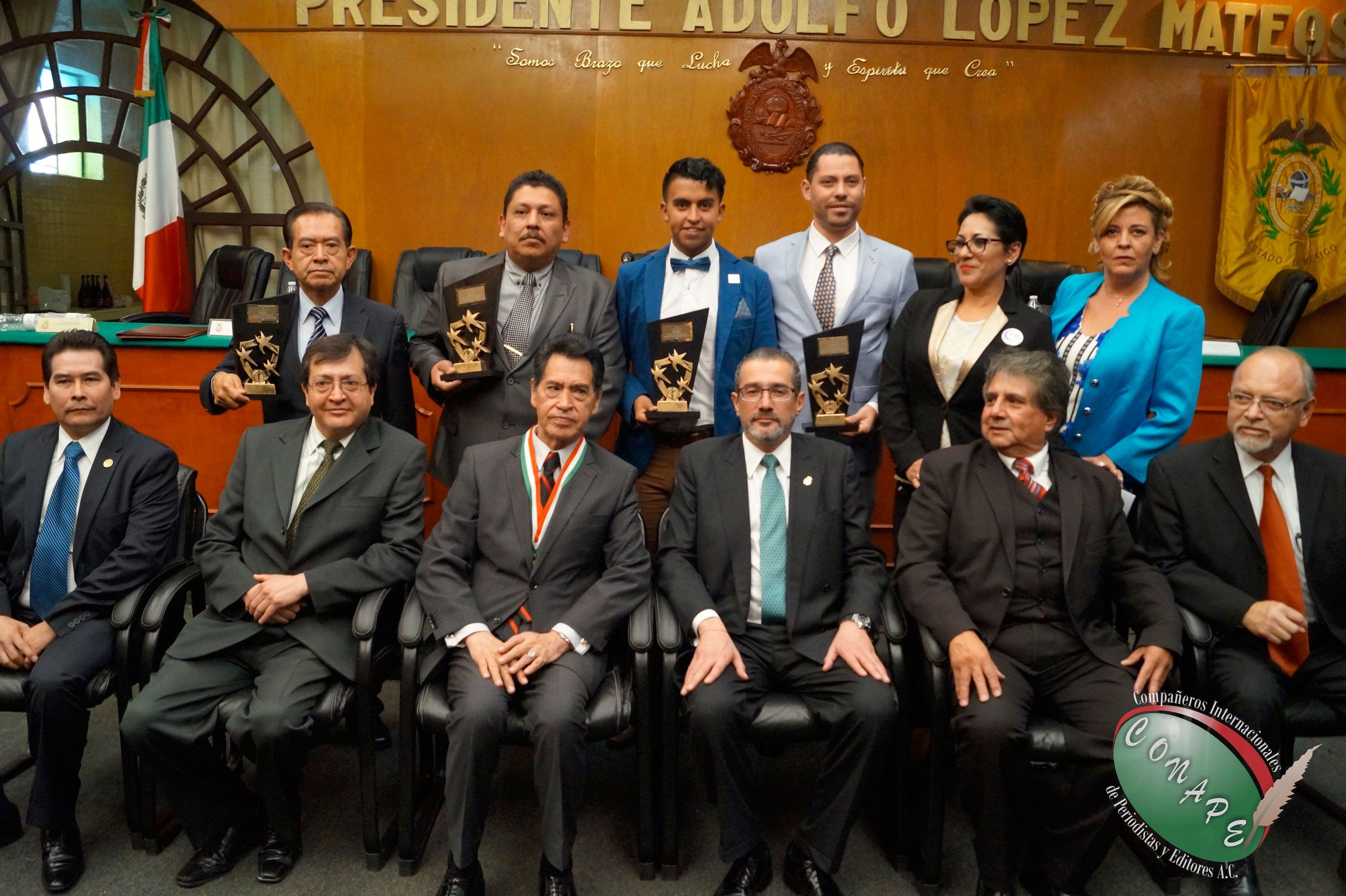 Los galardonados fueron el Lic. Alejandro Jaime Gómez Sánchez, Procurador de Justicia del Estado de México, el Lic. Alejandro Olivas Ortiz, Director del Periódico Agenda Informativa, el Lic. Pedro Santana Montoro de la Asociación de Abogados y Juristas Mexiquenses A.C. (ABJUM), Lic. Aleph Molinari, Fundador y Presidente de la Fundación Proacceso, Mtro. Germán García Salgado, Presidente de la SOMEGEM, Dra. María Magdalena Gutiérrez Cortés, Directora de Desarrollo Económico, Turístico y Artesanal del Municipio de Metepec, Dr. Abelardo Fuentes Borja, Médico Cirujano, Dr. Ricardo Álvaro Carrasco López, Médico Jubilado y al Mtro. Christian González Murillo, Fundador del periódico “La Balanza Prensa la Noticia” y Vicepresidente de Imagen Institucional, Radio y TV CONAPE.