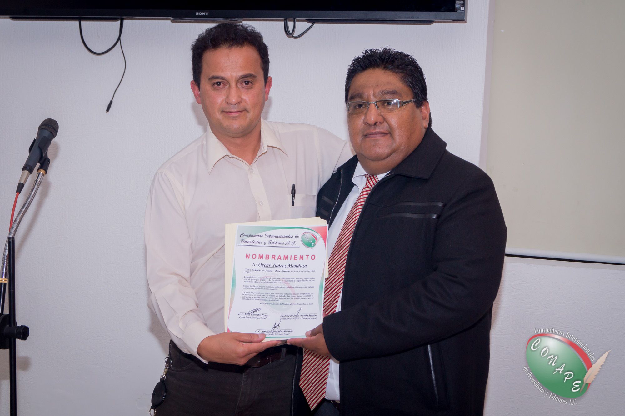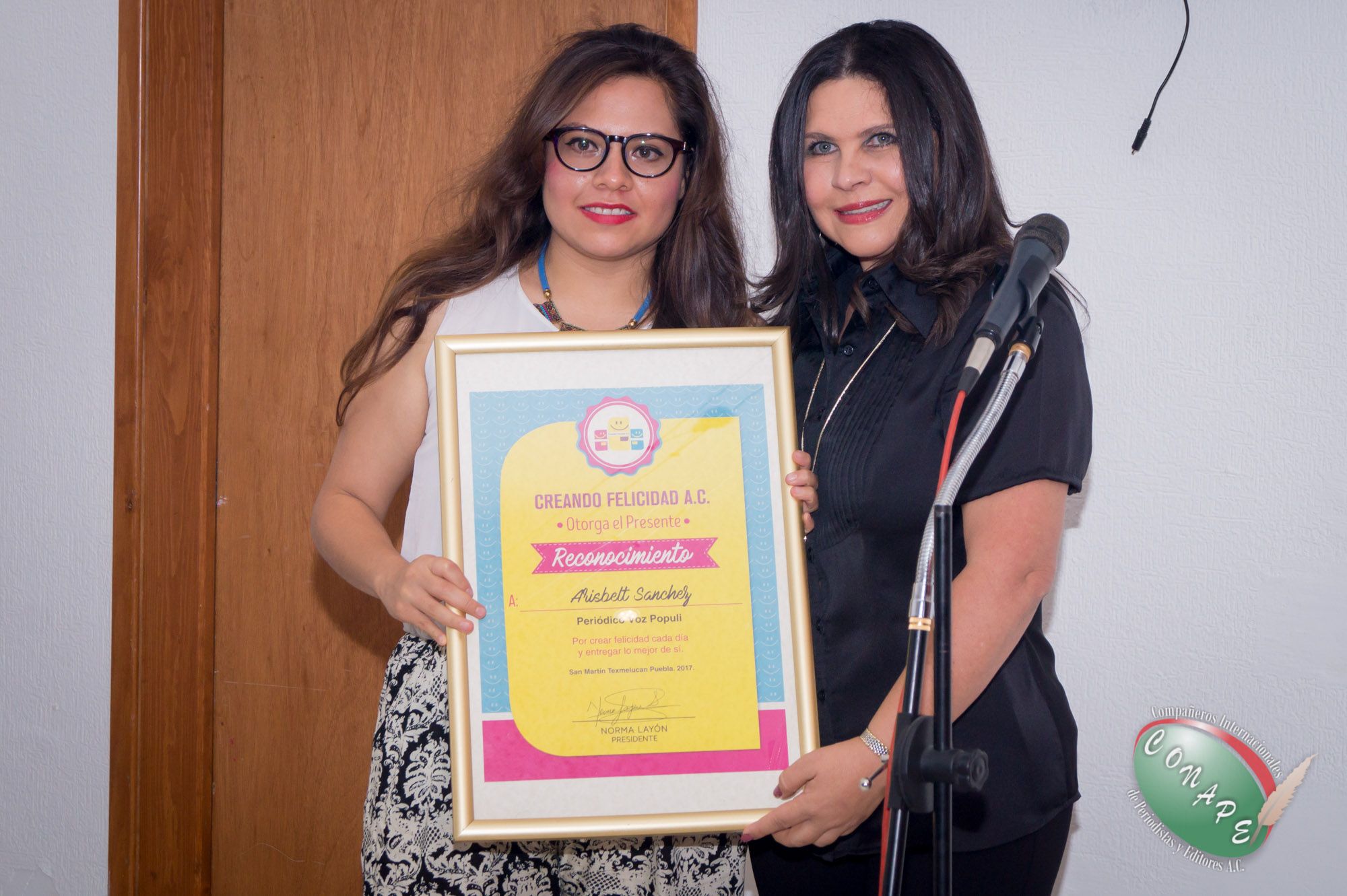 Al finalizar la ceremonia el Presidente de la UPTEX hizo entrega de reconocimientos a los miembros más destacados y comprometidos con la asociación durante este primer año de trabajo; de igual forma Norma Layón de “Creando Felicidad A.C.” hizo lo propio reconociendo el trabajo de la Unión de Periodistas de Texmelucan Puebla-Tlaxcala y de los miembros de CONAPE Internacional.
