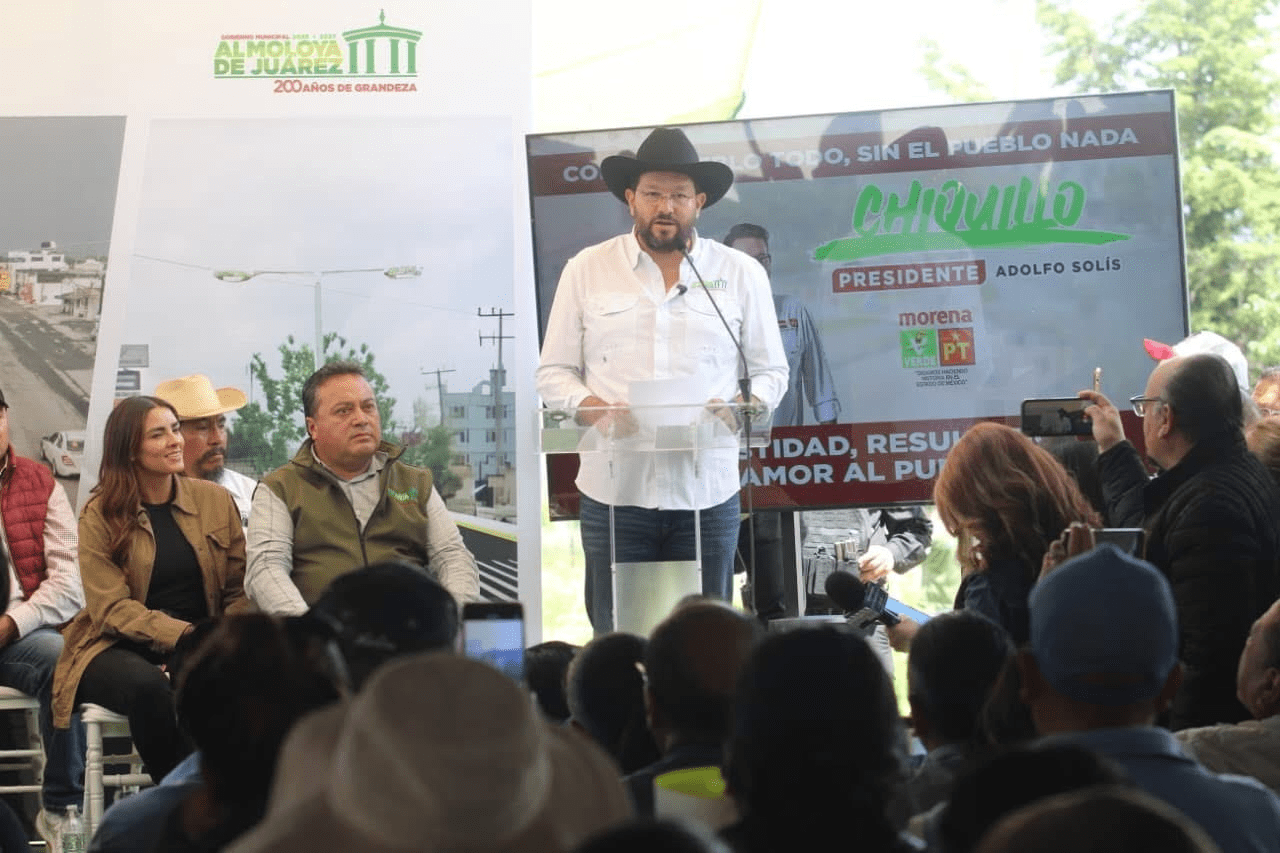 Almoloya de Juárez, Méx.– En los últimos meses, habitantes de este municipio han señalado que el presidente municipal, Adolfo Solís Gómez, estaría utilizando su imagen, la de la Presidenta de México y los logotipos de los partidos políticos que lo postularon para anunciar o inaugurar obras públicas.
