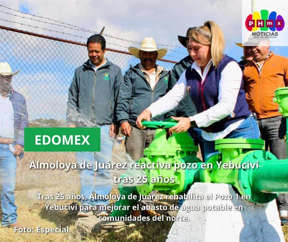 La nota titulada “Almoloya de Juárez reactiva pozo en Yebuciví tras 25 años” presume la rehabilitación del Pozo 1 en Yebuciví como una obra estratégica para mejorar el abasto de agua potable en comunidades del norte del municipio, beneficiando a zonas como Yebuciví Centro y Barrios, El Santito, Casa Nueva, Río Frío, El Jacal y La Lagunita, bajo la coordinación del OPDAPAJ.