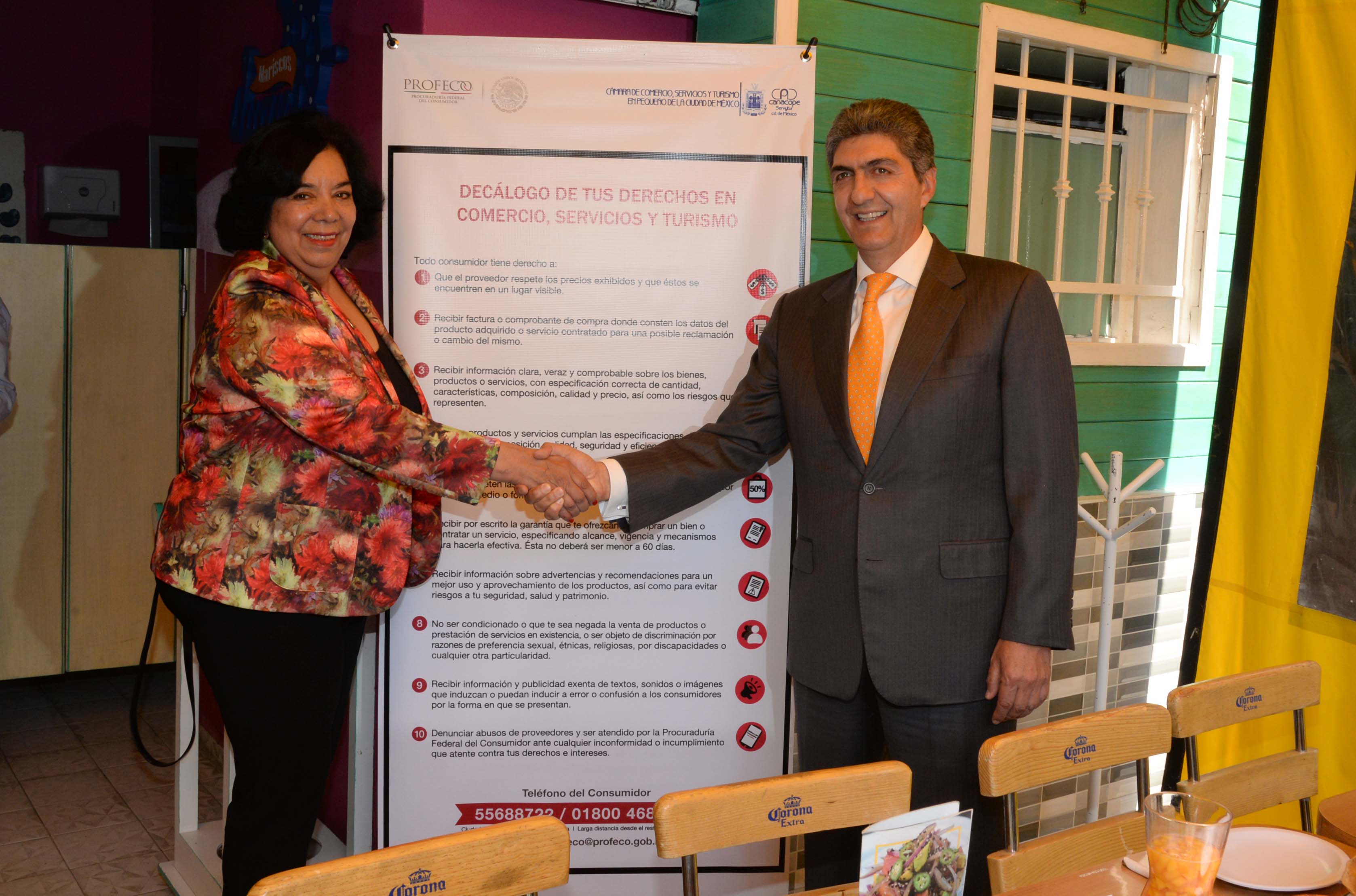Luego de la firma del convenio, el procurador Nemer y la Presidenta de la Canacope se dirigieron a un establecimiento ubicado en la Delegación Cuauhtémoc, en la Ciudad de México, donde colocaron el decálogo de derechos del consumidor.
