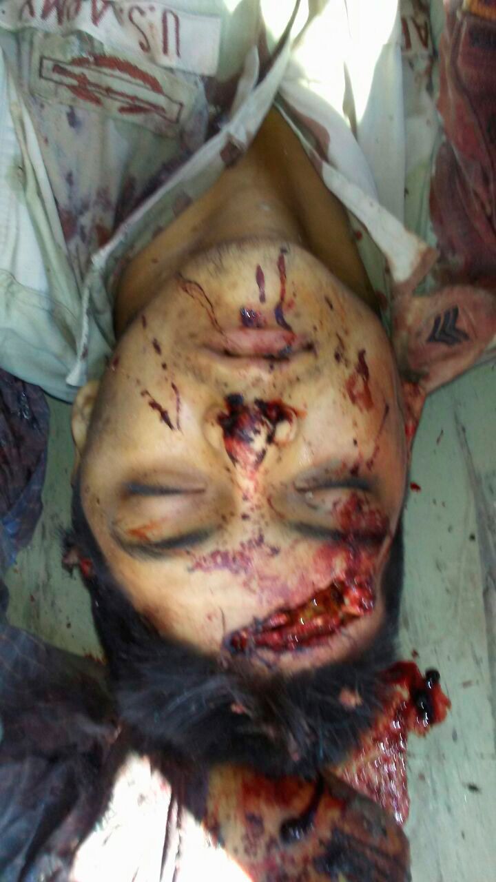 Posteriormente aparece la misma camioneta con los cinco cadáveres en el interior, varias armas largas, además de múltiples impactos de bala en la carrocería.