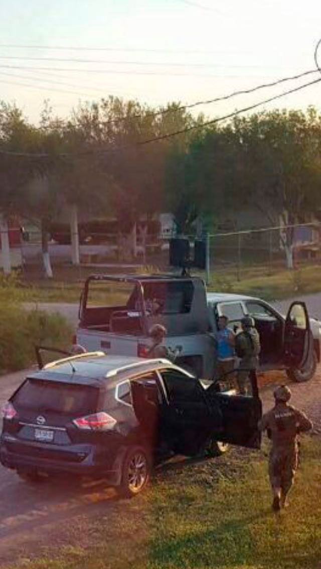 En las redes sociales circulan fotografías del momento de la detención de varios hombres a bordo de una camioneta Nissan, azul marino, de reciente modelo, con placas de circulación mexicanas.